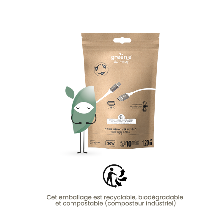 Câble écoconçu USB-C vers USB-C 60W - 1,20 m
